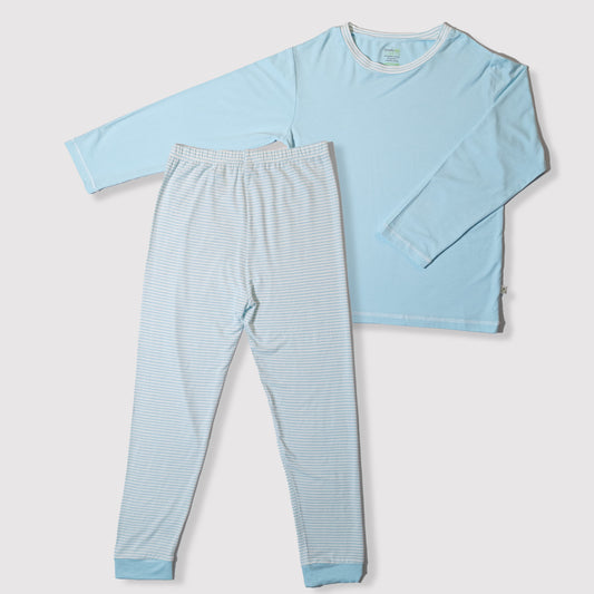 Long Sleeve Bamboo Pyjamas Set (Plain Top / Turquoise Stripes Pants)