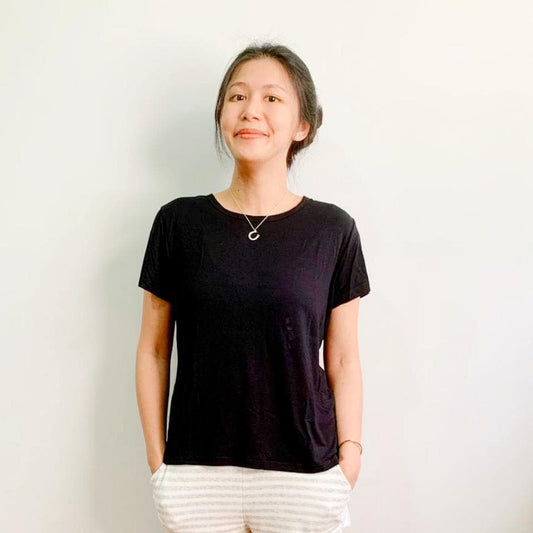 Ladies' Long-sleeved Round Neck Bamboo Tee - Black