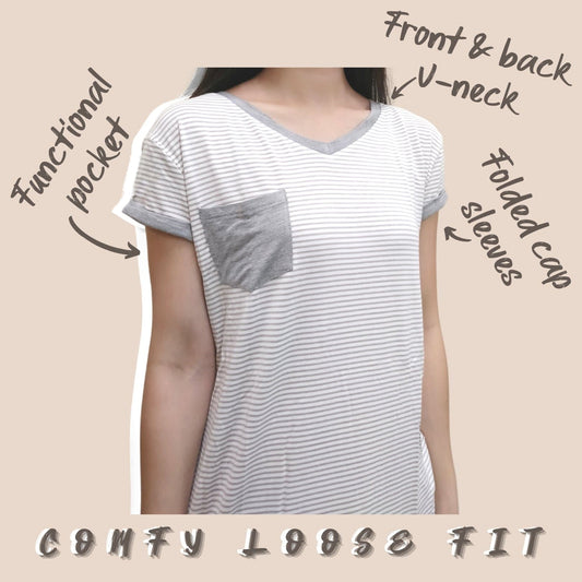 Ladies Crew Neck Bamboo Tee - Grey Stripes