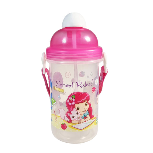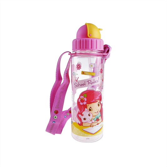 Strawberry Shortcake - BPA-free Kids Girl Canteen Water Bottle with Adjustable Strap & Soft Straw silicon spout (Children School)