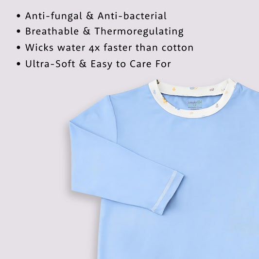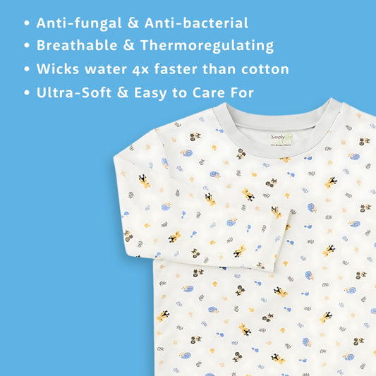 Long Sleeve Bamboo Pyjamas Set (Blue top / Cute Animals printed pants)