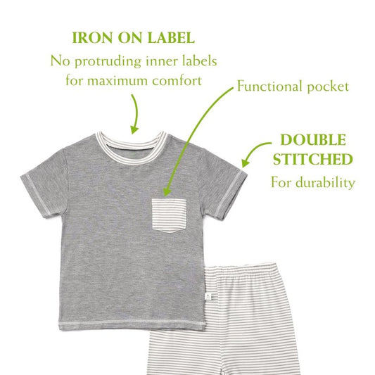Grey Stripes - Short Sleeve Bamboo Pyjamas Set with Front Pocket
