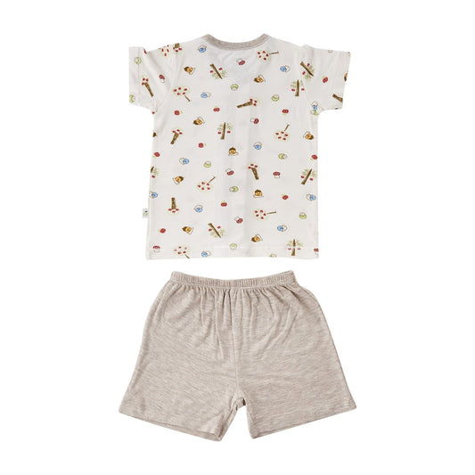 Apples (Khaki) - Baby Short Sleeved Button Vest with Shorts Set