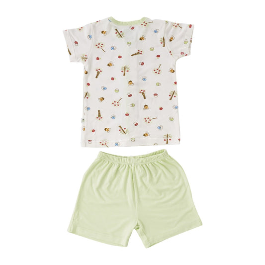 Apples (Mint) - Baby Short Sleeved Button Vest with Shorts Set