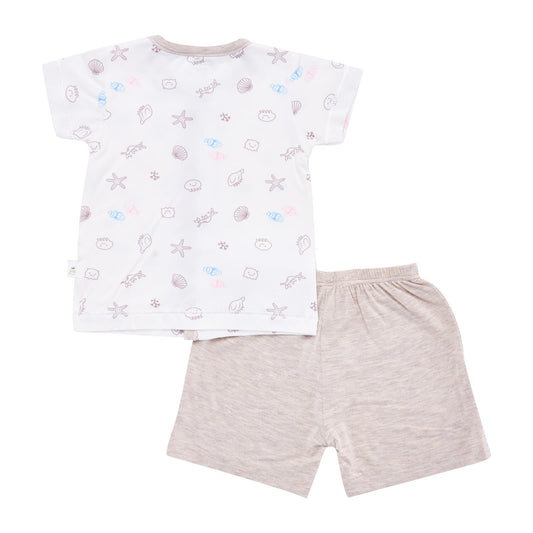Seashells - Baby Short Sleeved Button Vest with Shorts Set