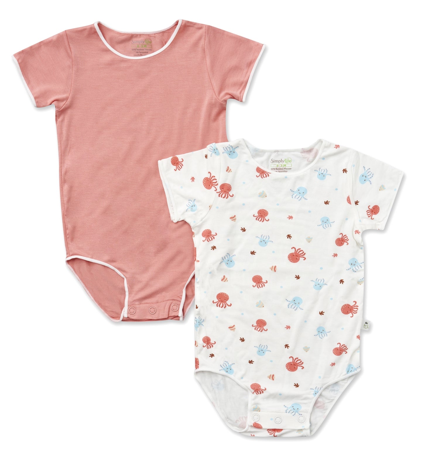 Octo and Coral - Short-sleeved Stretchy Romper (Pack of 2)