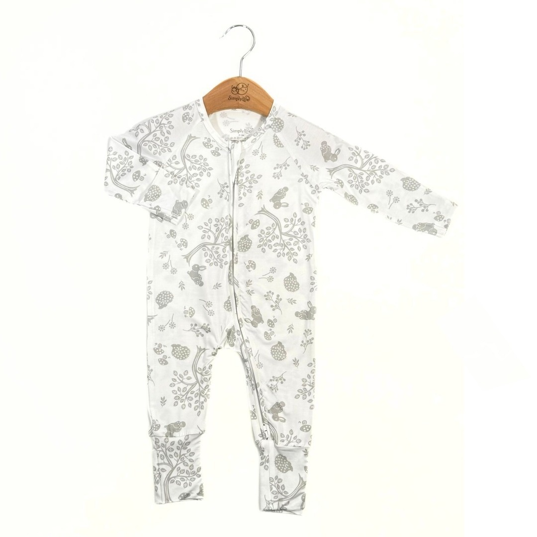 Vintage Forest (Silver) - Baby Long-sleeved Zipper Sleepsuit (Foldable Mittens & Footies)